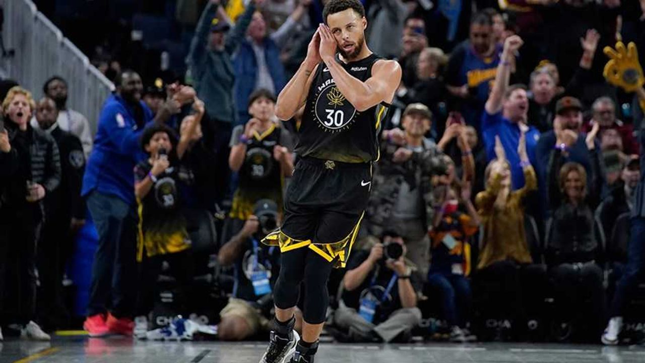 Cavaliers potasına 40 sayı gönderen Stephen Curry, galibiyette önemli rol oynarken, Andrew Wiggins 20, Jordan Poole 18 sayı attı.
