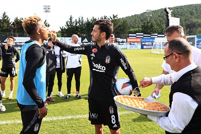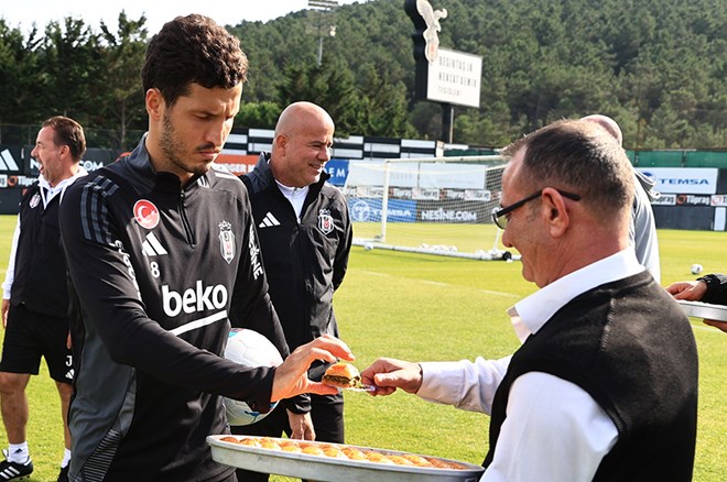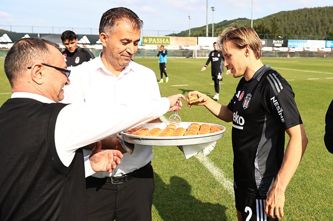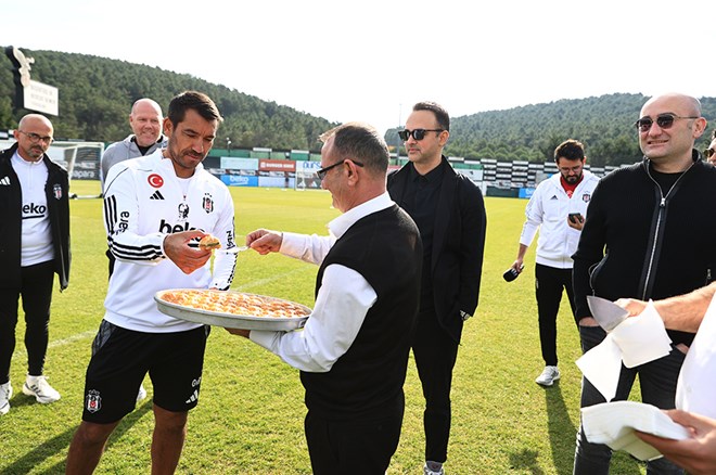 Antrenmanın ardından bir araya geldikleri siyah-beyazlı futbolculara Kasımpaşa maçında başarılar dileyen yönetim, teknik heyete ve futbolculara tatlı ikram etti.