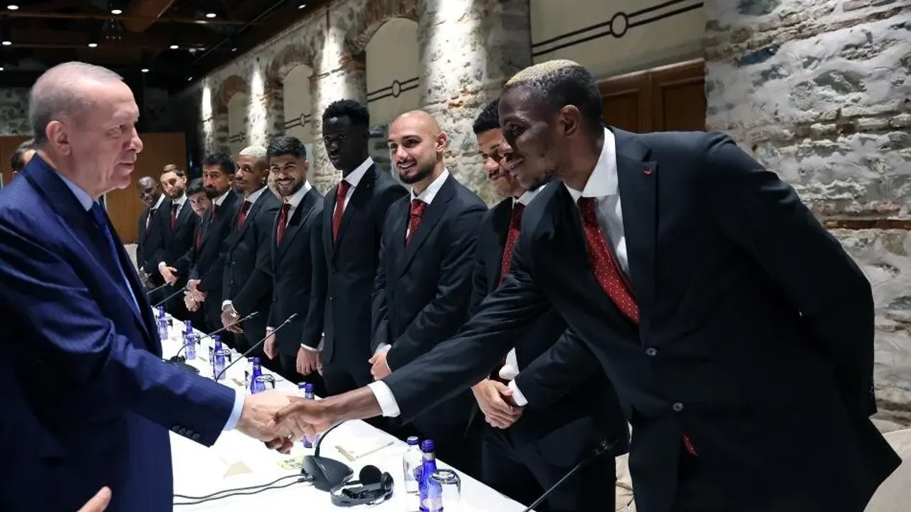 Cumhurbaşkanı Recep Tayyip Erdoğan, Galatasaray futbol takımı oyuncularını ve teknik heyeti, Dolmabahçe Çalışma Ofisi'nde kabul etti.